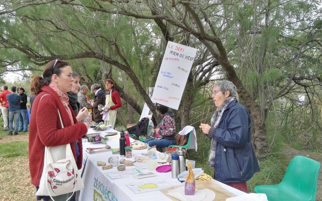 Dans l’après-midi, deux petites filles viennent s’essayer aux tawashis, elles épuiseront rapidement tout le stock de lanières, expliquant aux curieux comment s’y prendre pour tisser et réaliser des éponges. Et dans la foulée, une animatrice de l’accueil de jour pour les personnes atteintes d’Alzheimer, séduite, nous demande d’intervenir au cours d’un après-midi d’accueil, afin d’initier l’équipe d’animatrices et ce pour entretenir la motricité fine des personnes. Les actions zéro déchet ont parfois des débouchés surprenants…